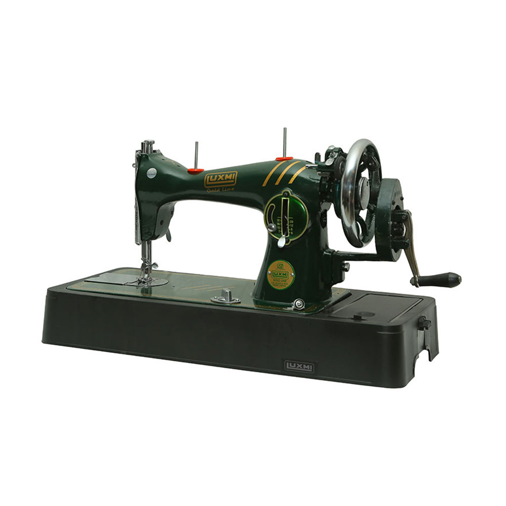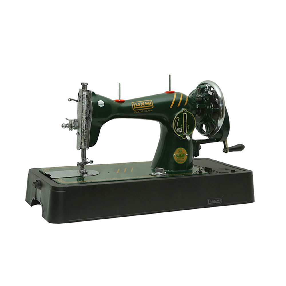 Decorative and Attractive sewing machine in Green color with open type shuttle race and feed droop system.